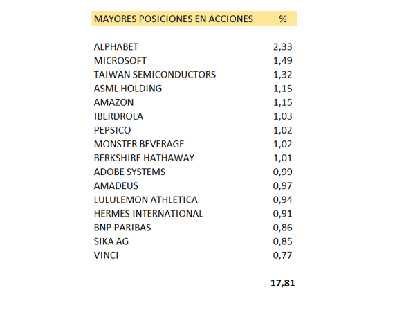 Nuestros Top holdings en cartera son los que se muestran a continuación: