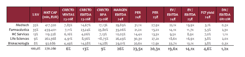 El segmento de MedTech tiene un peso significativo en nuestra cartera ya que sigue mostrando fundamentos sólidos con potencial de crecimiento sostenido, que está impulsado por innovaciones tecnológicas y demografía. Pese a que se enfrenta a focos de incertidumbre debido a factores políticos y financieros, los ciclos de productos seguirán siendo el motor del crecimiento orgánico, mientras que las fusiones y adquisiciones estratégicas contribuirán a mantener la competitividad. Por lo que seguimos otorgando al segmento un peso destacado en la composición de la cartera.